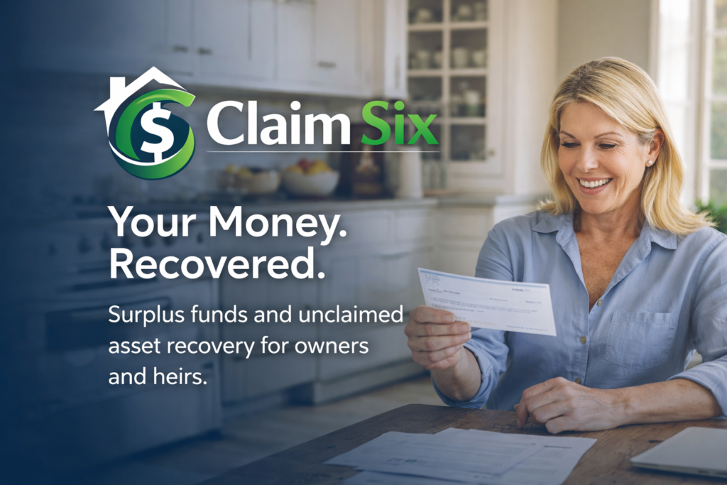 Claim Six locates and recovers surplus funds owed to property owners and heirs—no upfront fees.